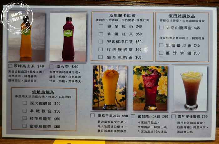 | 翻到背面就是茶品的部分,茶類也都不貴,有冷泡系列跟加入水果調製而成的特調,愛喝茶的朋友看到這菜單照片,是不是很心動呢? |