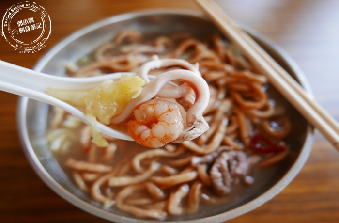 | 什錦的配料有肉絲、花枝、蝦仁,配料都蠻多的而且不會不新鮮,肉絲細細長長的很有嚼勁,花枝很有彈性又Q又鮮甜,蝦仁也是非常的脆彈新鮮,雖然都不是很大很厚實但是口感都有的,每口麵都吃的到這些配料超豐富的。 |