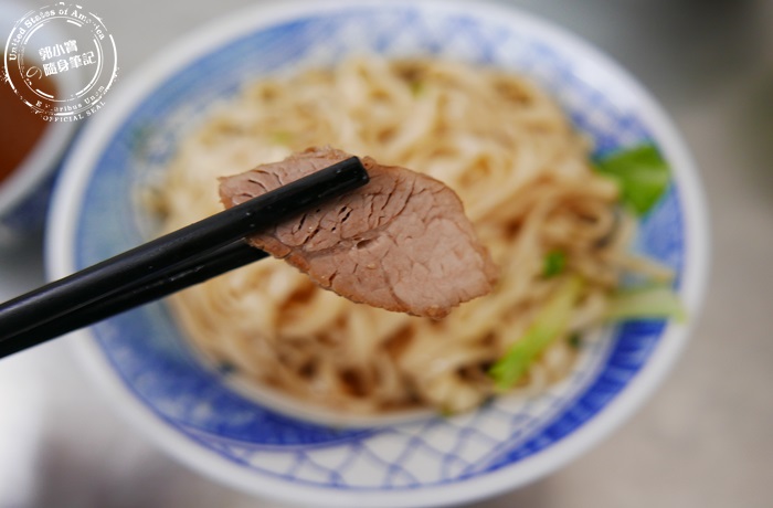| 乾麵裡頭有兩片肉片,都是瘦肉,他們家用稍微滷過的作法,滷的算是蠻上手色, 跟一般常見看到只有川燙過白白的不太一樣,肉質也有點粉嫩粉嫩的顏色,很軟嫩有彈性,新鮮好吃。 |