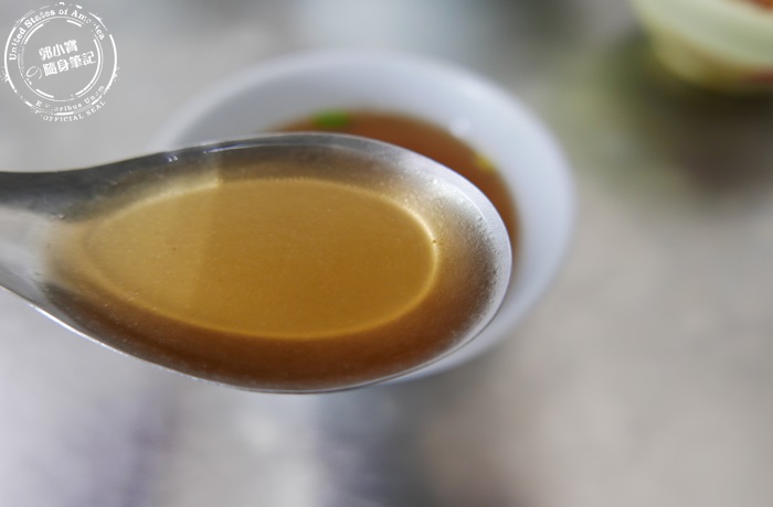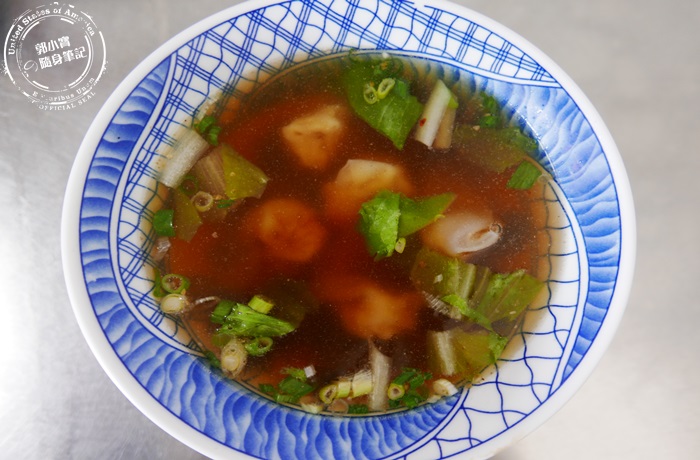 | 連乾麵附的清湯也跟一般看到的大骨湯不太一樣,他們家的也是高湯只是顏色比較深,味道沒有很濃很重,就是清清淡淡自然鮮甜味,非常清爽好喝,一點也不油喔。 |