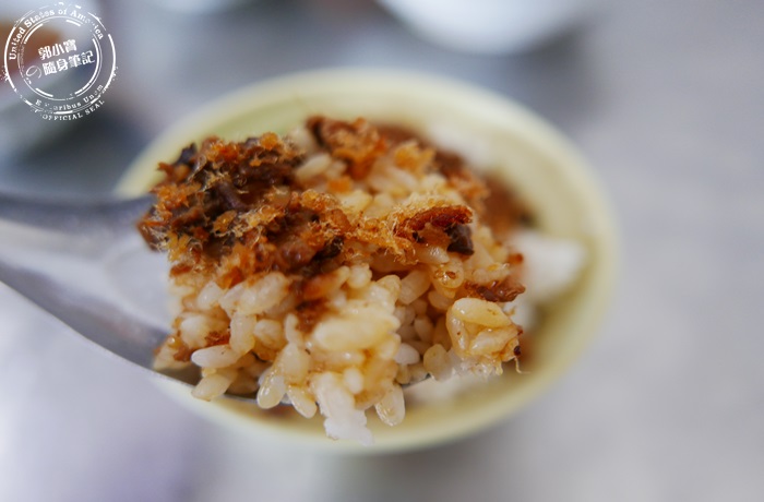 | 肉燥飯這樣才25真的很誠意十足,他們家的肉燥比較細小而且也沒有很大塊肥的油脂,對於不敢吃太油膩肉燥飯的人來說,這碗肉燥飯真是一大福音,肉燥的鹹香濃郁散發出豬油香氣,滷汁也都滲進去飯裡面,濕潤軟Q的米粒變的超夠味,重點他們家還有撒上魚鬆,魚鬆的香甜跟肉燥飯搭在一起,甜鹹甜鹹的真是絕妙的好滋味。 |