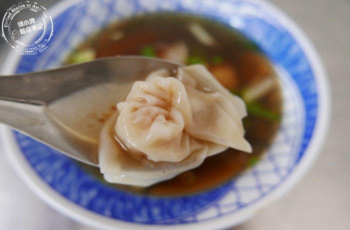 咬開的餛飩雖然裡頭的肉餡不是很大塊,但也是呈現粉紅色澤,很新鮮柔軟,跟湯一起喝甘甜味十足,雖然只有五顆小餛飩,但是整碗跟湯一起喝完超飽的,因為一開始天真地以為乾麵沒有附湯,所以有額外點了餛飩湯,沒想到吃完整個放到後腦勺。