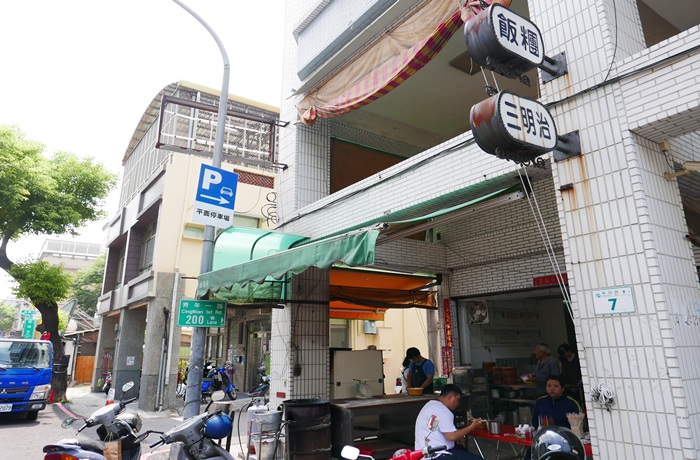 | 早起路過新田路發現這一排民宅裡某一間特多人,可是又沒有明顯的招牌只有兩個小招牌寫著飯糰跟三明治,上前探探才發現是一家傳統的早餐店,雖然不太起眼但可是在地人都知道的超夯早點,雖然新田路的馬路不大,但大家還是都將摩托車停在店門口,畢竟吃個早餐而已不會花太多時間。 |