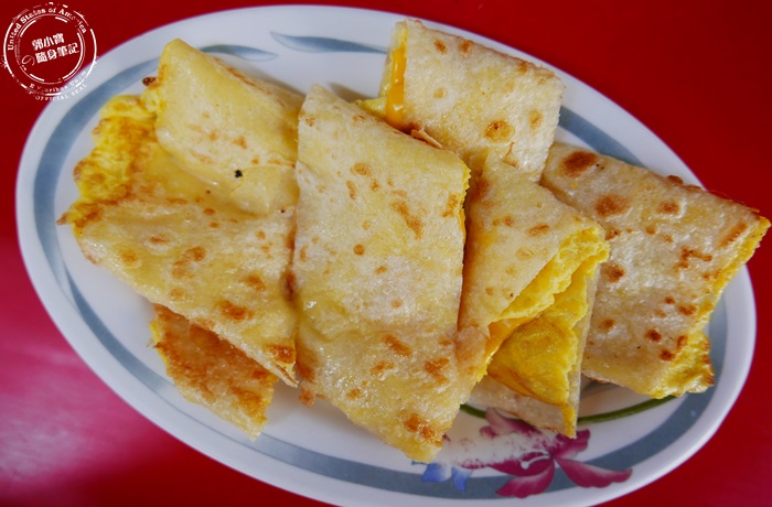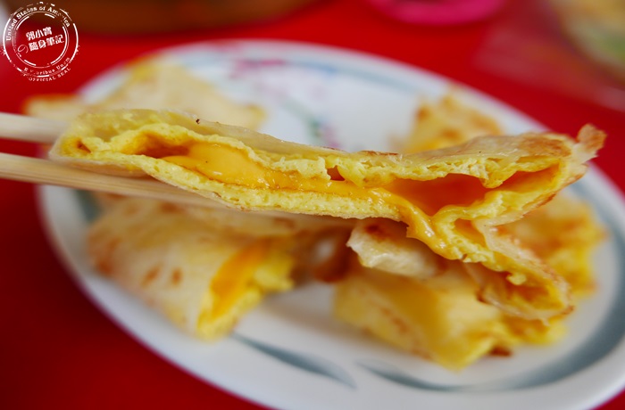 | 他們家的蛋餅皮雖然不是麵糊製成的,但感覺也是手工自製的蛋餅皮,外表煎的酥脆還帶Q勁,裡頭的蛋液帶著濕潤感,蛋香跟融化的起司相融合在一起,口感香醇濃郁奶香十足,整個蛋餅很有嚼勁越嚼越香,重點他們家的蛋餅看起來好霸氣,每塊都超大塊的,筷子要夾起來都很難HOLD住。 |