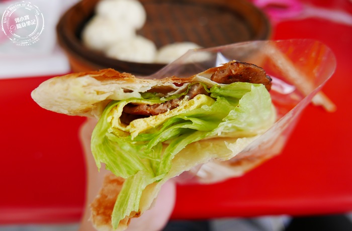 | 因為想吃燒餅類又不知道吃什麼口味,所以只好請老闆娘推薦,他說燒餅夾肉裡頭有蛋有生菜,聽起來蠻豐富的所以就點來吃吃看,果然這個好超值啊!整體看起來就營養滿分啊!烤過的燒餅外皮薄脆,又酥又香,現煎的燒肉帶點焦香味雖然厚度不厚,但不乾不柴越嚼越香,獨有的鹹香撐起了整個場面,生菜也是非常的新鮮脆甜,讓整體口感更多了層次,再搭配煎蛋的柔軟,這個燒餅夾肉太滿足了,想要滿滿的營養活力點這個就對了。 |