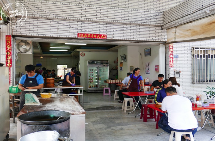 | 騎樓跟店裡面的右手邊位置擺放桌椅,就是內用的空間,座位不算多但也蠻足夠的,畢竟大家早上趕著上班很少會內用,左手邊則是作業區,有製作燒餅的烤箱、揉麵團的平台、包小籠包跟煎台櫃檯,可以一邊用餐一邊看師傅們製作的俐落手法,嘖嘖稱奇! |