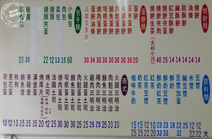 | 菜單就跟一般在傳統早餐店會看到的一樣,他們家可說是基本款的都有,特別的就是自製的燒餅酥餅這一類,還有大家來一定會點的厚皮小籠包,新鮮現擀現做超厲害的,重點價格不貴,畢竟旁邊就是雄商,學生族群多,當然要平價取勝。 |