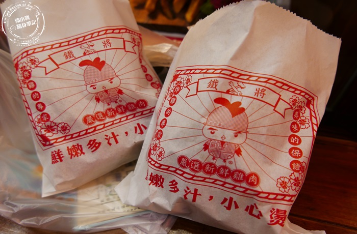 | 終於等到炸雞出爐了,連袋子都是店家特別設計過的,有印他們家的招牌,而且一直強調嚴選新鮮雞肉,的確他們家的雞肉是有經過CAS認證的品質保證,紙袋上也貼心的提醒小心燙口的字樣,千萬別學北編,一拿到之後覺得看起來無害立刻伸手要拿,結果燙到一個不要不要的,千萬不要著急著吃。 |