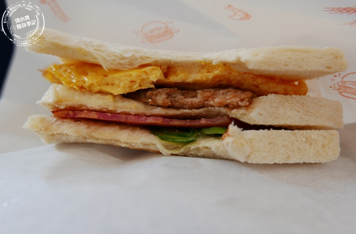 他們家的總匯三明治是不對切的,北邊覺得餡料很豐富,三片用炭火烤過的吐司,酥香又鬆軟,而且去了邊就不會咬到比較硬的口感,裡頭夾的配料有蛋、燒肉、火腿、醃小黃瓜,他們家用的蛋跟一般見到的不一樣,是有點像歐姆蛋的感覺,又大塊又有厚度,重點蛋香十足而且柔軟濕潤,燒肉也是醃得很入味釋放出肉的鮮甜味跟濃郁的蒜香,肉不會很柴很硬,口感軟嫩帶點彈性,非常好咀嚼,還有火腿香氣跟小黃瓜的脆甜,清爽解膩,吐司都會抹上美乃滋,整個滑嫩感增加甜度跟香氣也大大加分,從第一口到最後一口都吃得到內餡,用料非常的實在而且飽足,怪不得會是店裡面的招牌熱賣商品,早上來一份整個營養滿分,非常的健康又好吃。 |