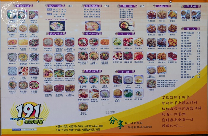 | 他們家的菜單就是這麼的大張,都有附圖片,但是點餐的那份就沒有照片,每樣餐點都看起來好好吃,而且分很多種類,有各國的料理,點心、兒童餐、補品、個人小火鍋,琳瑯滿目應有盡有,絕對可以滿足每個挑嘴的客人,而且三五好友一起來,大家都可以點不一樣的,也可以一起分享著吃,價格也都不貴,學生也能消費得起,非常棒的店家。 |