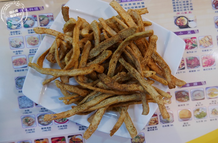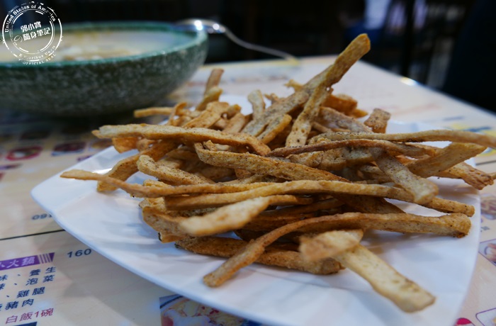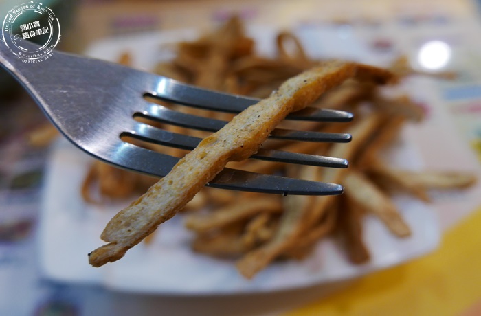 | 一開始還以為是賣場在買的蝦味先,想說是不是直接倒出來給客人食用,結果送上來並不是耶!是店家直接現炸出來的,他其實是黑輪片,只是把他片的很薄,然後在撒點胡椒粉調味而已,份量其實也不少,很適合當零嘴吃。 |