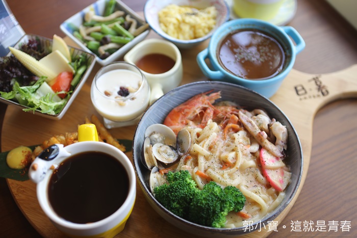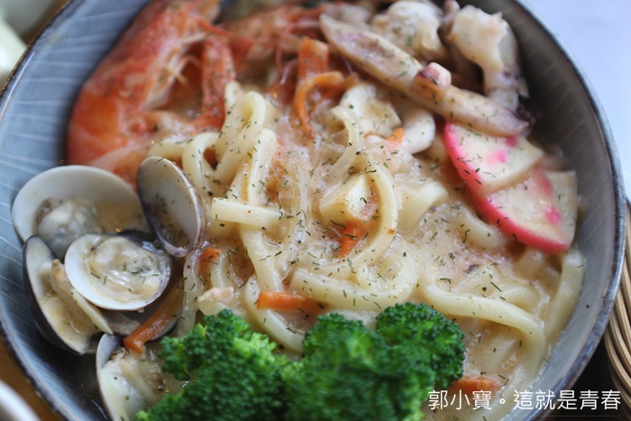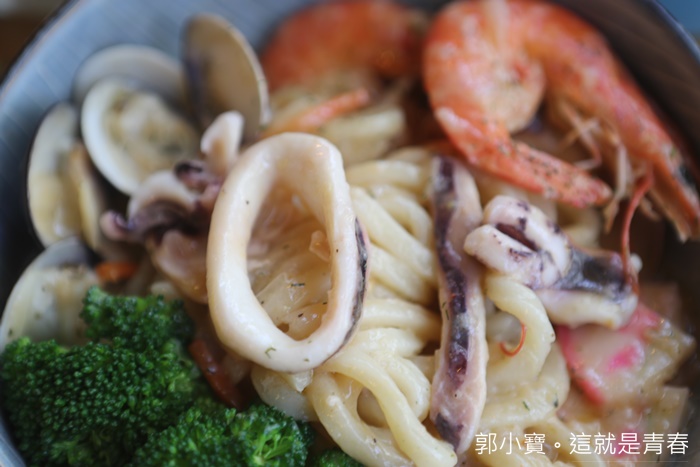 | 海鮮炒烏龍的份量還滿大的,海鮮料也非常豐富,放在桌上的時候就可以聞到飄散而來的陣陣香氣,簡直快忍不住偷吃女性友人的烏龍麵了,我覺得真的很用心,因為它們的口味很多都是拿來做義大利麵的,但是他們都運用在烏龍麵上,非常符合他們的主題,除了有日式的早午餐,也有和風的日式洋食! |