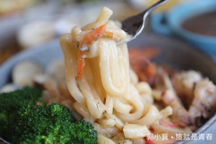 | 烏龍麵的口感真的很厲害,且奶油白醬有緊緊的巴在麵條上,濃郁的奶油味非常濃郁以外,還有另一個鹹味我超喜歡,仔細品嘗後才發現是乳瑪琳的味道,也太好吃了,沒想過這樣搭配真的很好吃! |