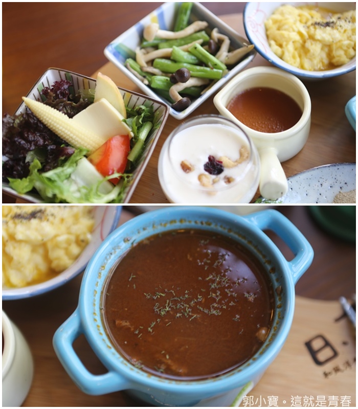 | 這次搭配的炸魚板,天啊,這日式早午餐也太好吃了,重點是擺盤一整個精緻無敵,一小口一小口的品嘗,品項超豐富,這邊夾一點那邊吃一點,一整個豐富度十足,沙拉的部分忘記拍到近景了,還有優格跟牛肉湯,一整個吃完就飽到天靈蓋了。 |