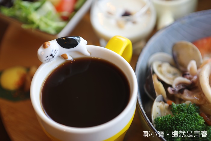 | 對於朋友點奶油白醬烏龍麵搭配熱咖啡我倒是有點好奇,不過每個人的口味不同啦、,話說他們家的杯子也太可愛了!!! |