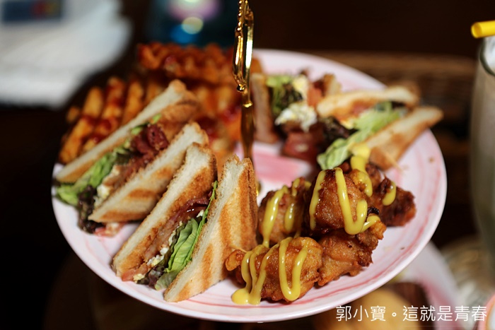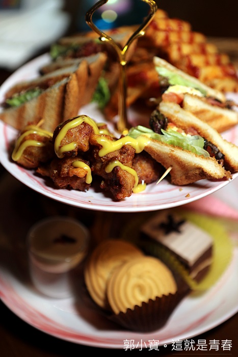 | 兩層碟上面放的都是鹹點為主,手指三明治還有先烤過,我個人比較喜歡烤過的吐司口感,還有日式炸雞塊肉汁也都有保留住,揪C口感又嫩,小鬆餅是蔓越莓口味酸甜也很適合女生族群,如果是情侶一起來享用這雙人下午茶套餐,上面這一層也很適合男生的口味阿XDD |