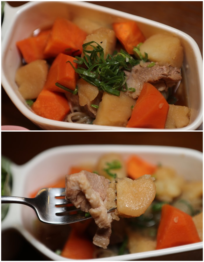 | 馬鈴薯燉肉的部分也很不賴,肉的分量老實說沒有特別多,但是紅蘿蔔跟馬鈴薯卻是給得很大方,燉的也很入味,兩個人一路吃到這邊也有半飽的感覺。 |