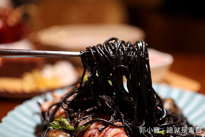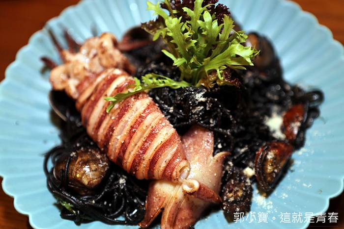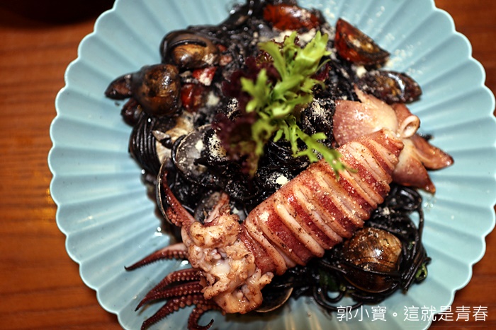 | 義大利麵上來的時候讓我有一點驚訝,這給的海鮮分量真的非常的豪邁,除了一整隻的花枝以外,還有超多文蛤的,媲美一般外面賣的海鮮義大利墨魚麵了,且味道真的還滿香的,收汁收的也很好,看到讓人食慾大開,我們這次兩個人點的都是這一個主菜。 |