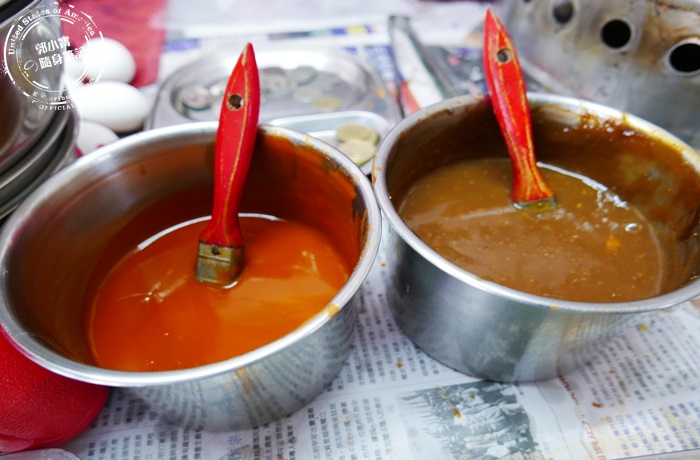 | 攤子上就是蔥肉餡餅跟蔥抓餅的靈魂醬料,店家特調的醬料肯定要添加的,看起來很古早味很厲害的感覺,分一般醬油膏跟辣味的,建議兩種都加因為真的不會太辣。 |