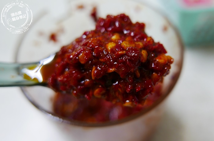 | 每一桌桌上都會有放這種辣椒醬,有很多的辣椒籽但卻是像辣豆瓣醬那樣的稠度,感覺辣椒沒有很多,香氣跟辣度都淡淡的而已沒有很濃烈。 |