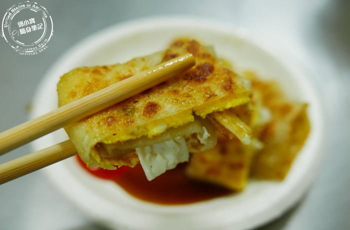 | 原本以為會是古早味麵糊做成的蛋餅,結果不是,份量不算太多,宵夜吃很剛好,蛋餅皮煎得非常的酥脆,幾乎完全的金黃帶點焦香,一口咬下果不其然,外表真的很酥很脆,薄薄的但是還有蛋餅皮的Q勁,而且越嚼越香,裡頭的蛋很柔軟很新鮮,蛋香十足,簡簡單單的就很好吃,重點要熱熱的吃,可以沾醬油膏或是番茄醬,或者兩種搭在一起吃也不錯,味道上帶點酸更能開胃解膩,很不錯,這樣一份才$25,很便宜耶,半夜肚子餓來吃這樣一份蛋餅,很滿足又不會太罪惡。 |