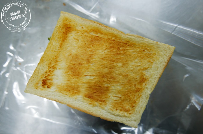 | 吐司烤的金黃酥脆,但裡頭還吃的到吐司的柔軟,簡簡單單的就是將吐司烤過之後,塗上美乃滋,鋪上肉鬆跟蛋還有醃漬的小黃瓜,他們家的美乃滋很香甜很滑,跟肉鬆搭配在一起那個濕潤感很棒,重點香氣更迷人,他們家的小黃瓜也很厲害,是呈現長條塊狀的夾在裡面,以往艾編很討厭吃小黃瓜的味道,但是他們家的不會討厭唷!他們家的小黃瓜不會有生的味道,醃漬的很濕很軟但是一樣有小黃瓜的脆,甜甜微酸的味道很清爽,胃口都開了,裡頭夾著的這個蛋也是很強大,店家是把煎得很像歐姆蛋的感覺,很鬆軟又濕潤,蛋香味十足,蛋裡頭的氣孔,裡頭的飽水度,外頭煎過的蛋香,熱熱的吃超級滿足的。 |