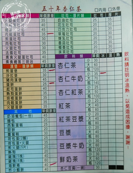 | 早餐店般的擺設,現成品不多全部都是現點現做,雖然很傳統年代很久遠,但他們家裡裡外外都整理的乾乾淨淨的,不過一個店面有兩家店在使用,中間的走道空間大概僅一人可通行,就走道的部分比較擁擠而已,其他還好。 |