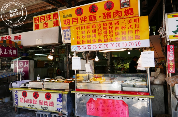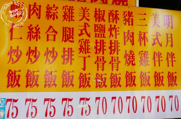 | 菜單就在攤位上,價錢蠻便宜的,選項也算豐富,有便當有炒飯的,當然店家最招牌的人氣餐點就是「明月伴飯」了,這名字好美,好像古裝電視劇裡會出現的用詞,也很應景中秋節的樣子,覺得特別,肯定要點來吃的。 |