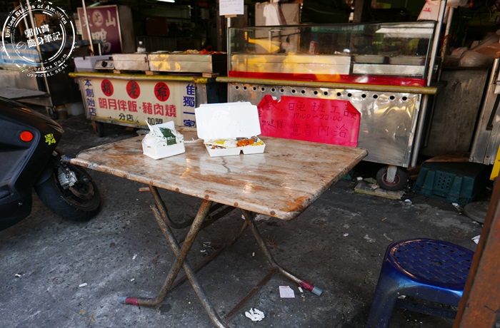 | 其實他們家給人的第一印象不是很優,因為店開在市場裡,環境本身的衛生就有待加強,內用的座位區就長這樣,只有一張桌子,周圍也不太乾淨,建議大家還是外帶就好,畢竟他們家都是外帶居多,其實攤位上有很多菜色任君挑選,但因為艾編來的時間點已經過了中午用餐時段,攤位上的菜色經過一陣大戰過後,每樣菜剩沒多少,而且又比較髒亂的樣子不美觀,怕各位看了會倒胃口,所以就沒特別拍菜色,還是會對這家便當店有興趣的再等你們過來試試看囉! |
