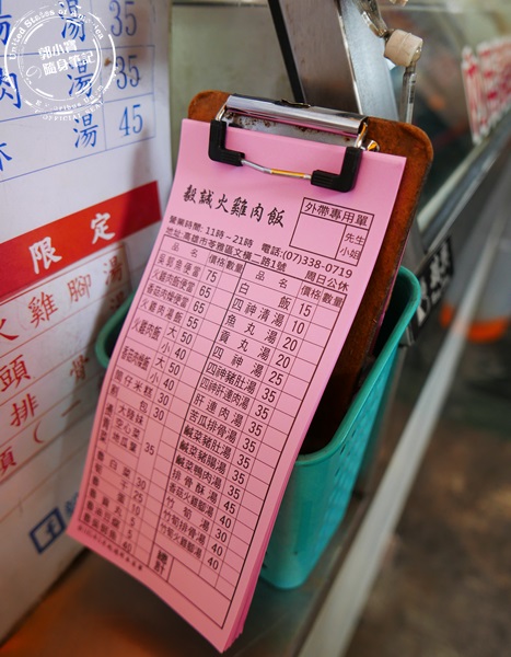 | 外帶專用菜單就放置在攤位旁很明顯的地方,方便臨時停車的客人填單等候外帶。 |