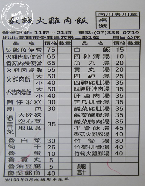 | 內用的是白色的菜單,這樣比較不容易搞混,內用的桌上都有菜單,填完單後交給店家就可以了,店家送餐上桌的時候就會直接收費用唷!他們家都是賣飯類跟湯比較多,可以單叫飯類跟點小菜還有湯,豐盛的可以多人一起吃,想簡單的吃一餐就可以點便當,就可以每一樣吃到一點一點的,吃的飽也不易過量。 |