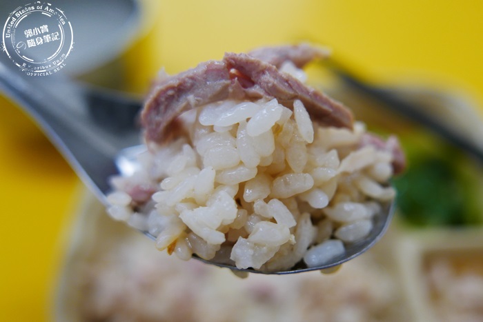 | 他們家的火雞肉飯,淋的醬汁還蠻多的,攪拌過後整個飯是很濕潤的,變得非常有味道,還有雞油香,微微的鹹度還有回甘的醬油香,真的會讓人大口扒飯,上頭的火雞肉切成條狀的,有別於雞絲,這樣的口感比較有咬勁,雖然很嫩但還是吃的到火雞肉緊實的彈性,帶一點點的油蔥酥香,味道跟香氣更提升,一口接著一口停不下來,太好吃了! |