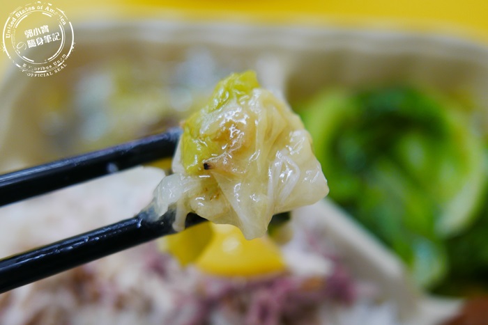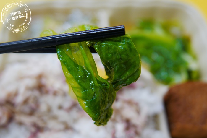 | 便當裡頭會有三樣配菜,滷白菜是其中之一,不得不說他們家的滷白菜真的很香,滿滿的那種小蝦米的味道,鹹香中又帶點海味的鮮再配上白菜的甜,燉的軟爛再微微的勾芡,這個外帶回去長輩都愛,超好吃超下飯的。 |