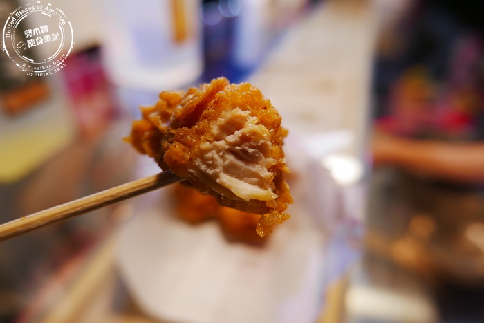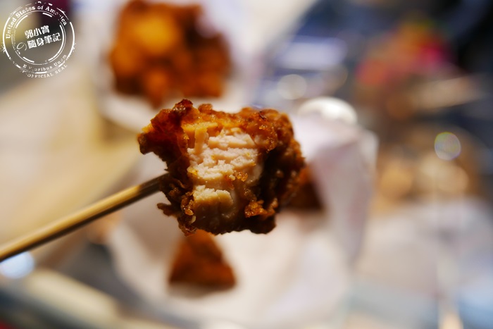 | 他們家的香香雞算是份量蠻大的,每一塊雞肉大小很一致,醃過的雞胸肉外頭裹上粉漿,粉吃起來沒有很厚,裡頭的雞肉非常的軟嫩,重點超多汁,很水潤,味道超香,算是比較重口味了,有一種濃郁的蒜香氣息,跟特調的粉漿炸的酥脆鹹香,吃起來完全在嘴裡擴散香氣,鮮美多汁的味道超棒的。 |