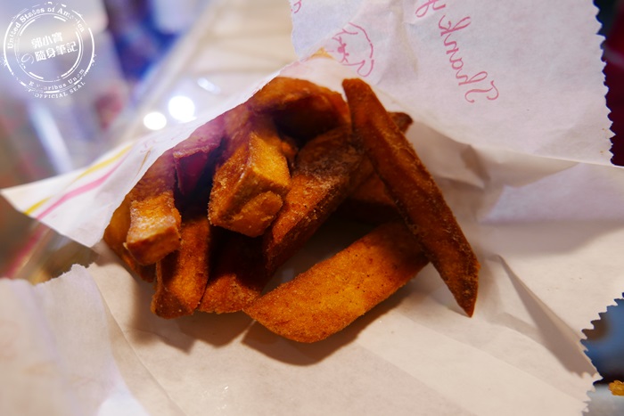 | 甘梅薯條也是老闆他們當天新鮮現削的,可以感覺到粉漿的部分也不厚,好像沒有裹粉一樣,不過真的有裹上薄薄的一層粉喔!吃起來很酥脆裡頭很鬆軟綿密,地瓜香濃,再搭配外層灑上的梅子粉,甜甜微酸的,味道上更有層次更好吃,開胃解油膩超唰嘴,還會回甘這滋味超棒的。 |
