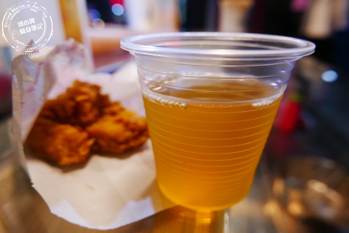 他們家除了炸物之外,也有一些冷泡茶飲,老闆娘看艾編在一旁就嗑起炸雞了,所以很貼心的倒了飲料給艾編喝,很清香的茶味,無糖解渴,沁涼解膩,吃油炸的還是喝茶最好,無負擔又健康,可是如果喝茶會失眠的,就不要晚上喝囉!