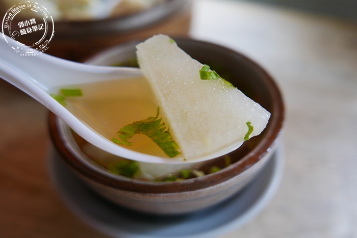 | 其實湯汁不算太多,但是湯汁很清很鮮甜,就是吃他的原汁原味,沒有添加太多其他的調味料,單純感受肉汁,跟青蔥水感,味道很樸實很淡的在嘴裡存在著。 |
