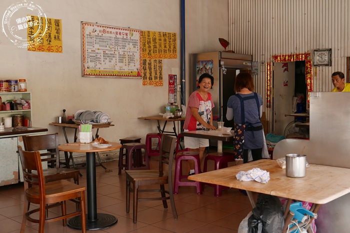 | 店裡的座位區有到鄰居家作客的感覺,有一種會有很多長輩一起齊聚吃早餐的溫馨空間,看著鏡頭的就是老闆娘,她的熱情活力,臉上總是掛著微笑,看到他彷彿一整天都很美好。 |