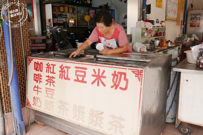 | 想要知道他們家的古早味道不道地,一定要來上一杯咖啡牛奶試試,看看這裡面ㄧ桶一桶的冷飲,完全是記憶中的老味道,看上一眼暑氣消了一半,點個透心涼的咖啡牛奶喝吧!友人點了一杯要外帶回家喝,艾編有偷喝一小口,真的很古早味,跟樹德家商那家老字號早餐店「味芳珍」有得拼唷! |