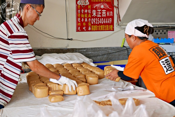| 現場各自分工各自忙碌,只有櫃檯人員會熱情的招呼唷!動作非常的迅速,現場直接製作包裝,看著桌面整排滿滿的饅頭,好壯觀的呀!前方還有裝很多袋的,不曉得是不是客人預訂的,生氣超好,客人是進進出出的,可以用駱驛不絕來形容這家店的高人氣。 |
