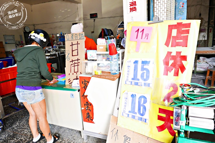 | 店家每個月會休兩天,都會提前公佈在店裡面,好讓大家知道這個月休息是什麼時候,以免撲空,他們家還有自產自銷的甘蔗汁,吃包子配甘蔗汁好像很特別,但艾編這次手邊還有飲料就沒有買了,留給你們下次來的時候喝喝看囉! |
