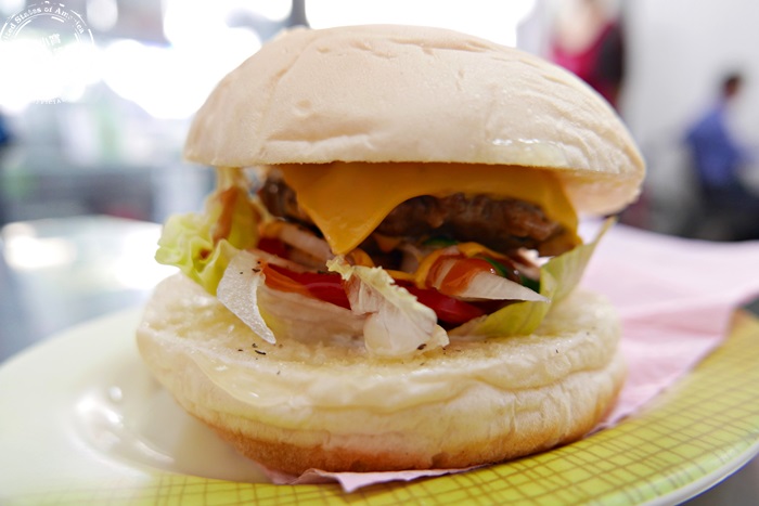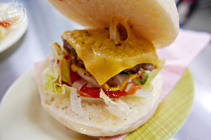 | 聽說這款店家手工自製的漢堡排,也是店裡熱賣的人氣餐點唷!但因為漢堡肉新鮮現煎,常常讓客人等太久,所以漢堡肉一直還在做調整階段,目前這樣看起來是蠻厚的,不是很大塊就是了。 |