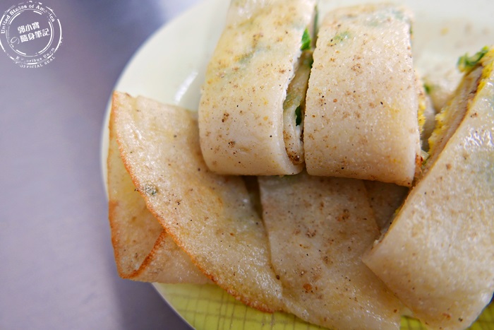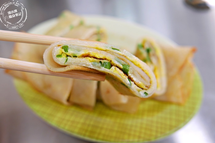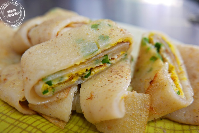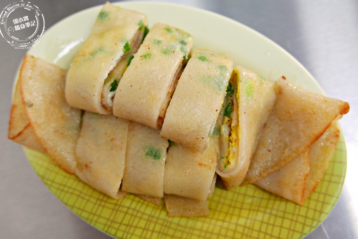 | 來的時間有點晚,一進到店裡老闆娘就告知,蛋餅只剩下一份,果然是主打的招牌,那麼快就要賣完了,幸好還有吃到,是說這蛋餅皮煎的也太美了吧!雖然是古早味的,但是真的很少看到這餅皮煎的跟法式薄餅一樣漂亮,捲起來一層一層的,看起來就超美味的樣子,份量也不少,口水直流呀! |