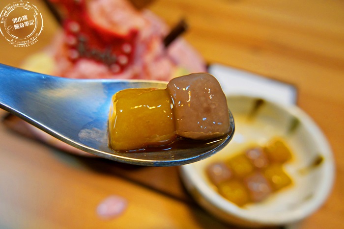| 他們家的芋圓不得不大推一下了,不僅口感香Q,外表滑嫩,大小適中,重點味道超香的,地瓜就是濃濃的地瓜味,芋頭就是很香濃的芋頭味,越嚼越香,甜味並不會讓人覺得甜膩,搭配雪花冰吃起來,Q勁再加分,這芋圓手工天然的好吃呀!吃完會回味無窮的唷! |