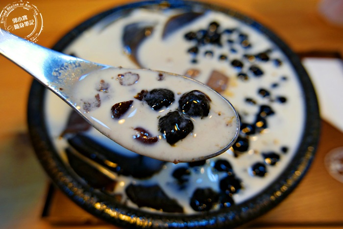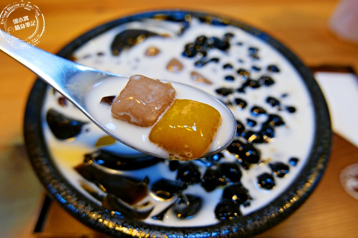 | 香Q的芋圓搭配牛奶一起入口,甜味稍稍的中和許多,一樣的很Q很有嚼勁,天然厚實濃郁的香氣,讓人意猶未盡,如果覺得剛剛的雪花冰的芋圓太少,也可以直接點這碗甜品吃,份量很多,絕對能飽到不要不要的。 |
