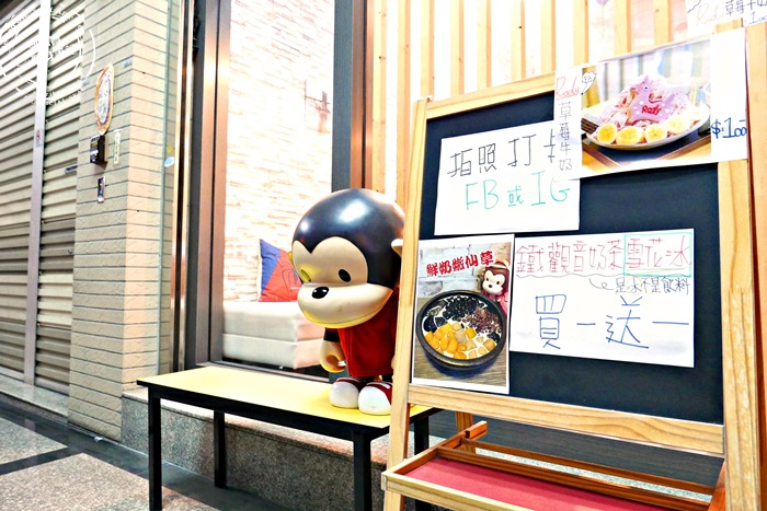 | 門口候位區有可愛的猴子可以拍照打卡,小朋友一定超開心的,大看板有店家強打的招牌,還有特惠的活動,或是新品上市,初次來不曉得要吃什麼,店家都有很多實品照可以參考唷! |