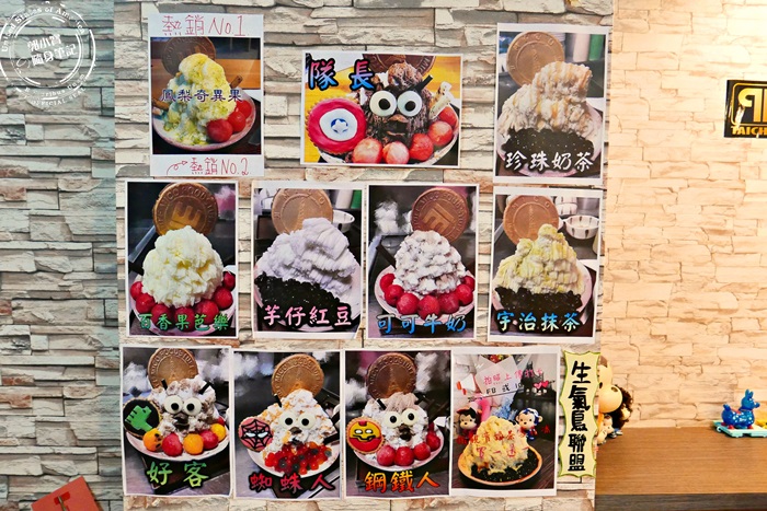 | 店裡面的雪花冰都有特寫照片,老闆貼在牆上,方便客人挑選自己喜歡的,不用看菜單也會知道有什麼好吃的,如果是帶小朋友來,那小孩子絕對會瘋掉的,每樣都那麼可愛,老闆好有才華喔! |