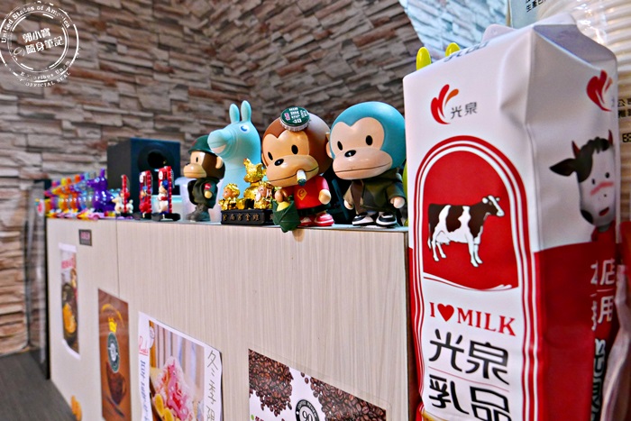 | 櫃檯原本就有高度,再加上這一整排的公仔,好像再幫老闆擋目光,想是再對客人說,你們看我就好了,不要偷看我老闆再後面忙,真的很成功吸引目光唷!店裡面有很多公仔擺放的整齊又可愛,吸引客人拍照。 |