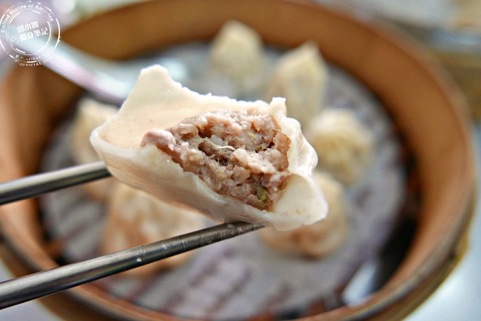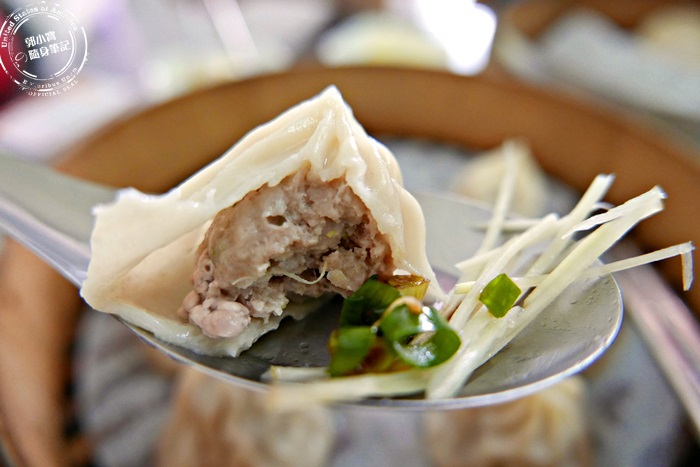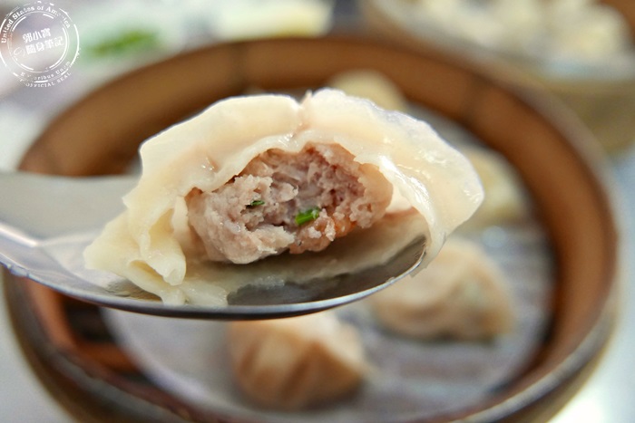 | 裡頭肉餡相當的飽滿,外皮很薄很有Q勁,麵粉香甜味十足,貼合蒸籠底部的餃子皮柔軟,皺摺處較厚所以很軟Q,內餡軟嫩多汁,非常的鮮美,每顆蒸餃裡頭都有一隻蝦,雖然不大隻,不過鮮甜味還是有的,豐富肉汁吃起來就是舒服,好新鮮呀! |