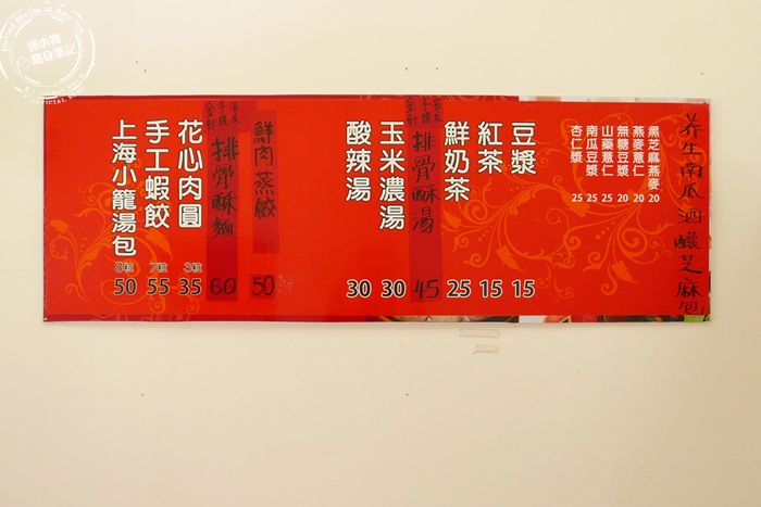 | 他們家的菜單基本上就是湯包為主,湯品跟飲料也是必需的,還有店家是以養生健康為主,所以也有燕麥薏仁杏仁⋯⋯等飲品,早餐這樣吃就很營養也能吃的飽,而且他們家價格好便宜,湯包一籠8顆才$50,吃的飽又不傷荷包唷! |